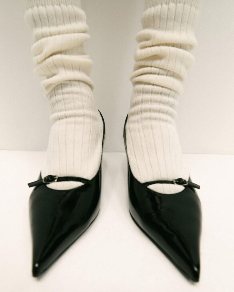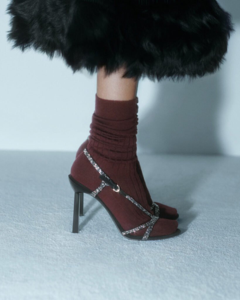 Whether you’re slipping into a pair of sparkly Magda Butrym heels or dressing down with Vetements’ punk-inspired stilettos, socks are your new best friend. For festive parties, opt for metallic or embellished socks to add glamour. At more casual outings, sheer or lace options keep the look playful yet polished.